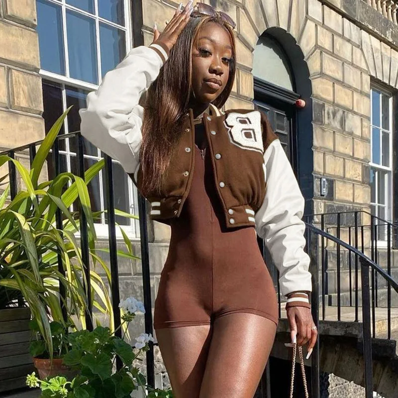 Fall Winter Jackets Womens Jackets Puffer Women's Coats Patchwork Crop Top Leather Sleeve Letter B Women's Jacket