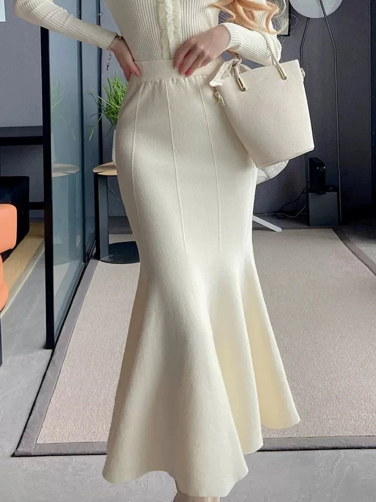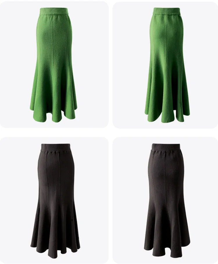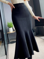 Women Black Knitted Skirt Slim High Waist Mermaid Elegant Retro Party Fashion Evening Chic Female Skirts C-067