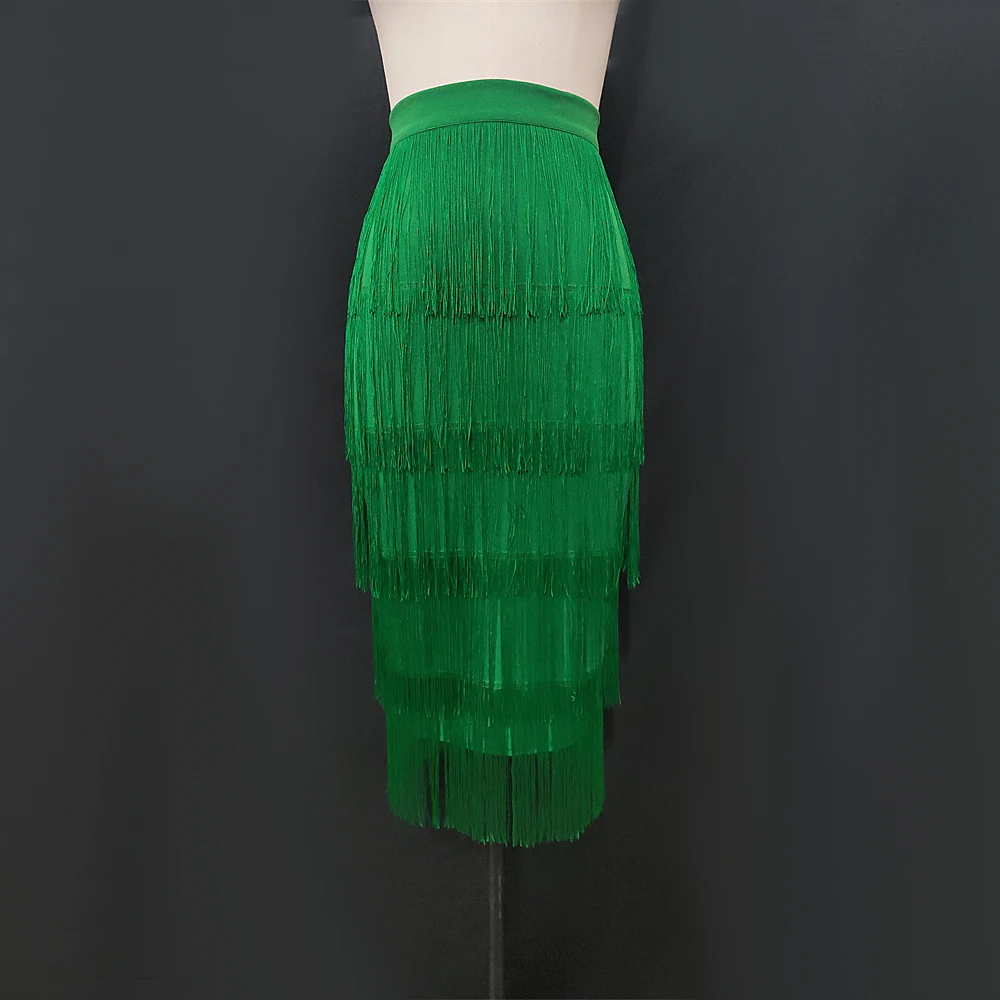 Women's High Waist Fringe Skirt Tiered Drums with Sheath Midi Skirts Tassel Plus Size Elegant Modest Party Rh Dance Wear