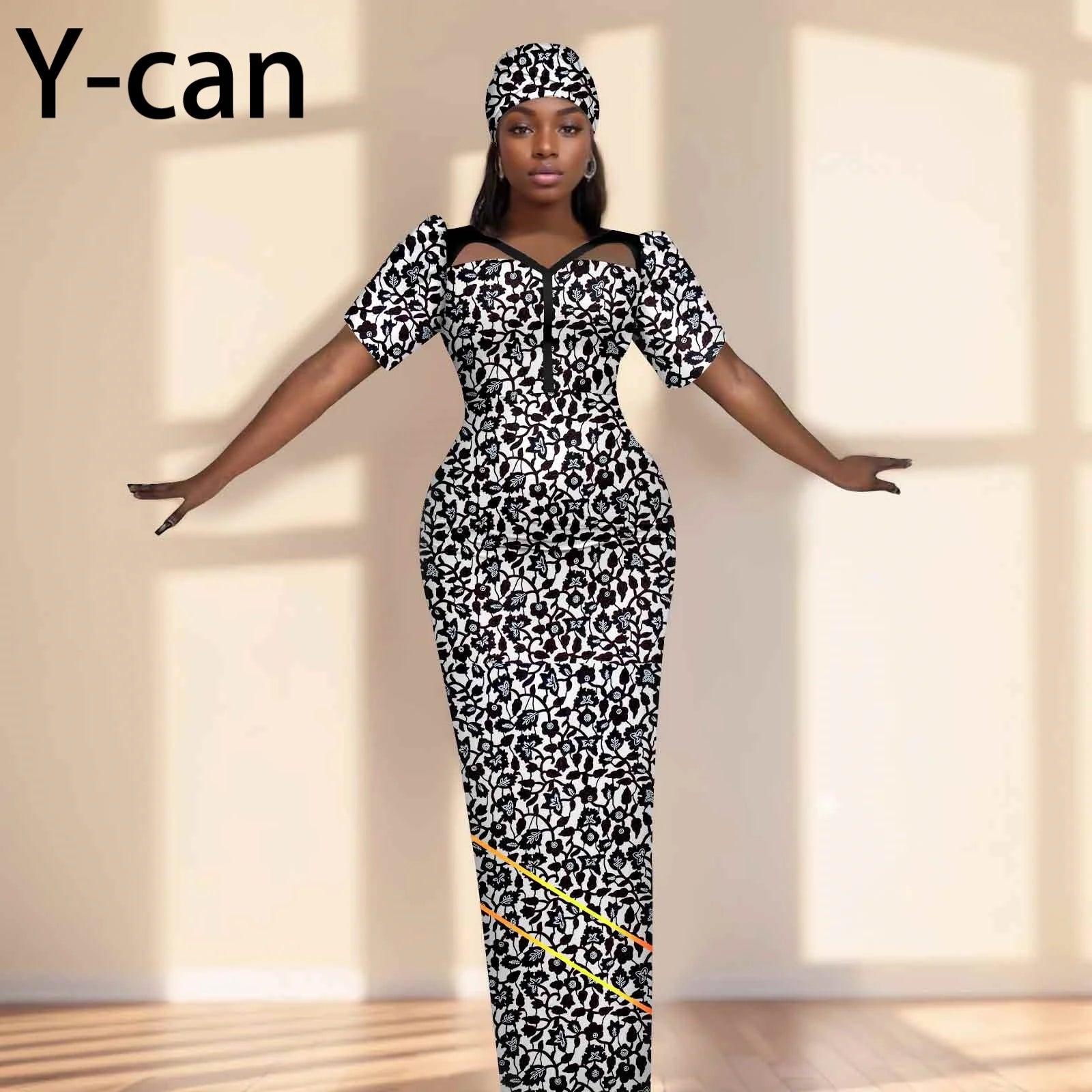 Robe de soirée robes africaines pour femmes coupe ajustée robe à manches courtes robes de soirée avec bandeau Dashiki Ankara imprimer 2525071