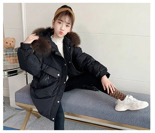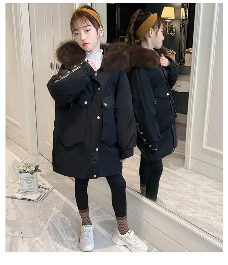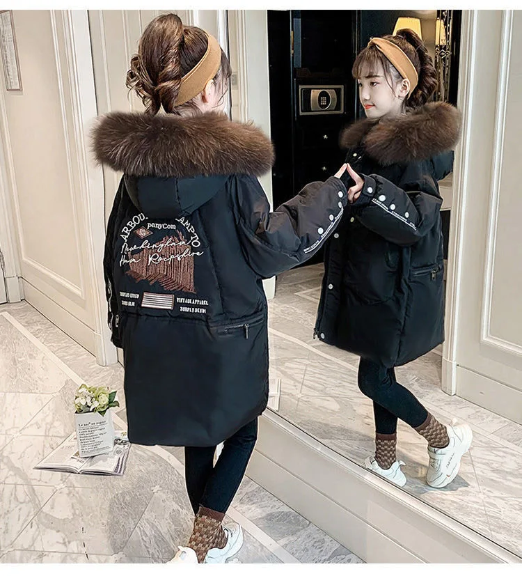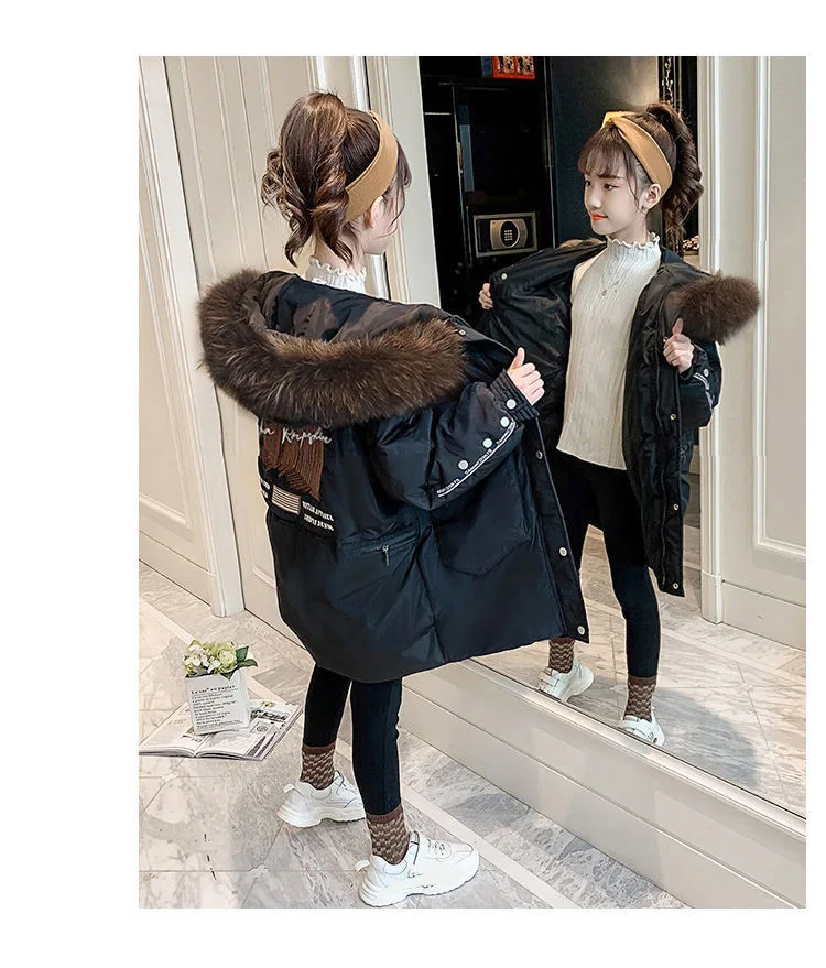 Teen Girls Warm Coat Winter Parka Outerwear Teenage Long Tops Children Kids Girls Hooded Winter Jackets for 5 6 8 10 12 13 Years