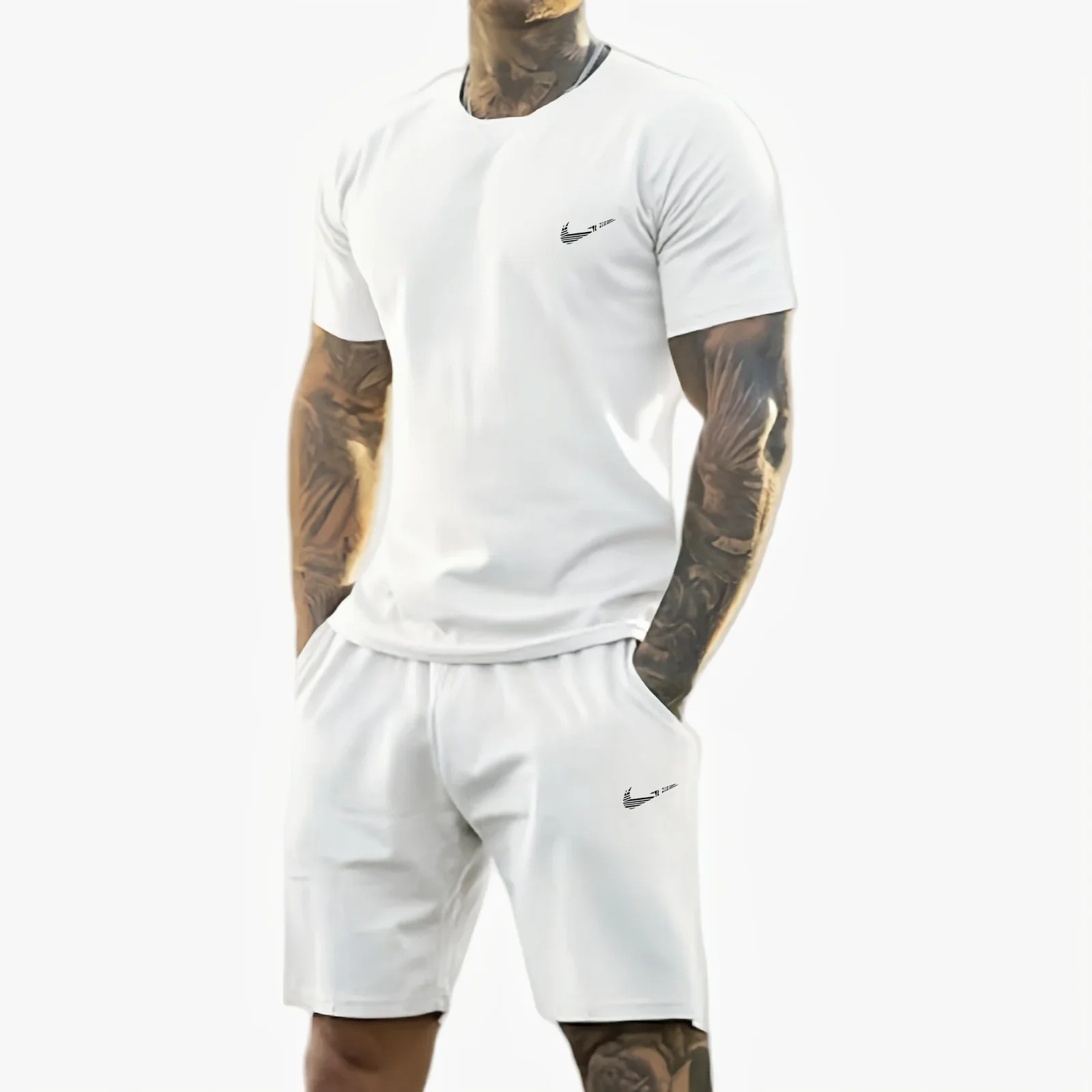 2025 summer new men's printed short-sleeved T-shirt + shorts suit, casual sportswear, breathable outdoor casual men's T-shirt,
