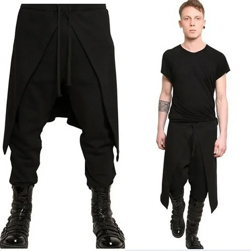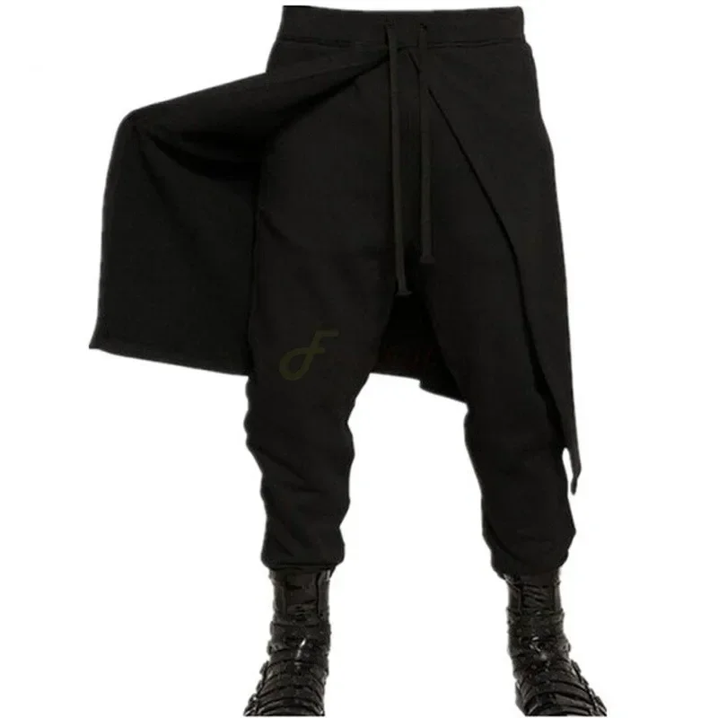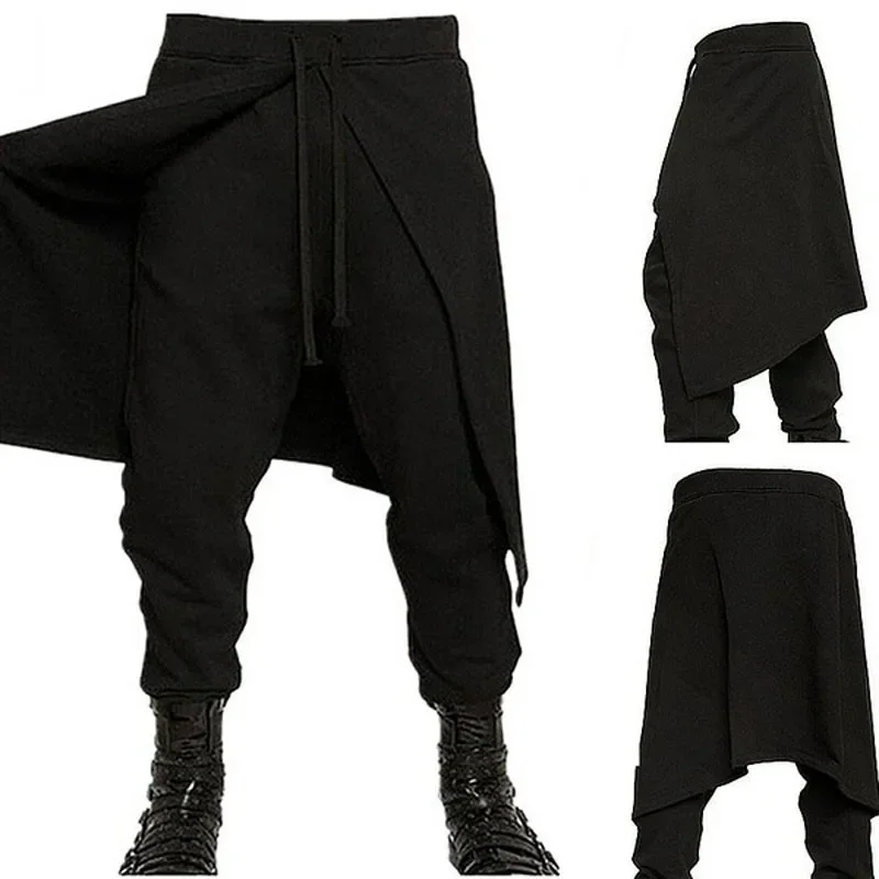 2025Halloween Costume de pantalon noir Steampunk médiéval pour hommes, pantalon ample épissé de Style occidental, Cosplay de scène