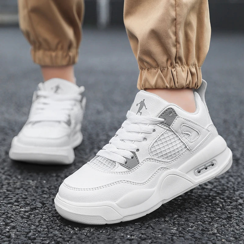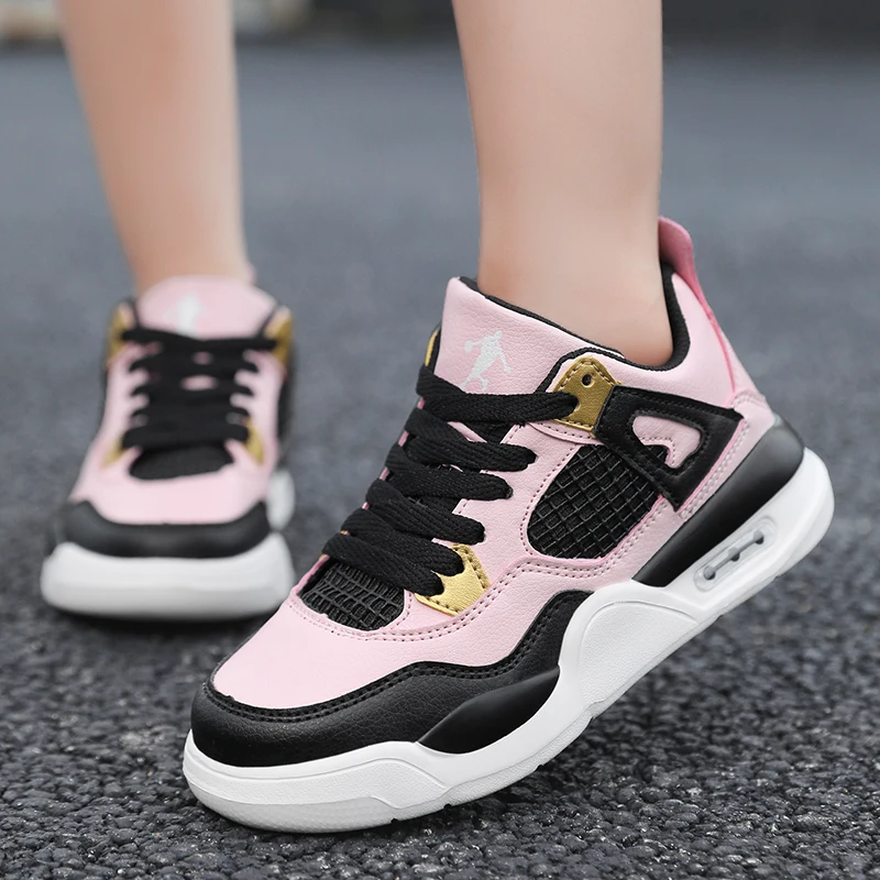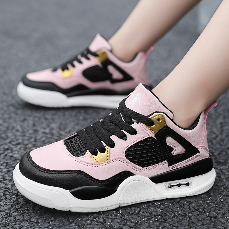 Baskets de basket-ball en cuir à lacets pour enfants, chaussures de skate plates décontractées, tennis pour enfants, qualité, mode, filles, garçons