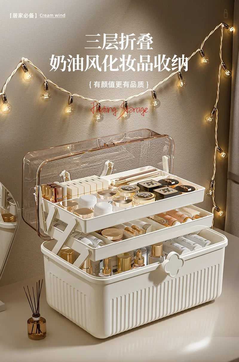 Cosmetics Storage Box, Desktop Dustproof, Large Capacity Organizer Box, Makeup Table, Skincare, Lipstick Shelf