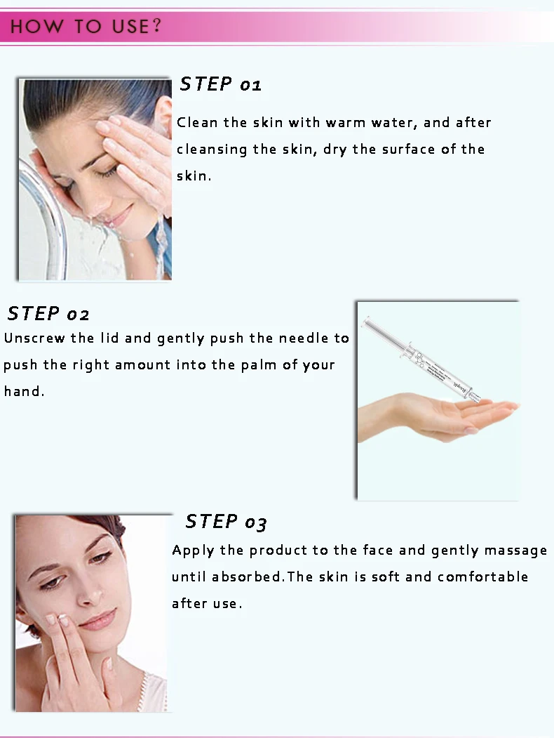 Clean the skin with warm water, then dry the surface of the skin. Unscrew the lid, gently push the needle, and place an appropriate amount of this product in your palm. Apply the product to the face and gently massage until absorbed. After use, the skin feels soft and comfortable. |