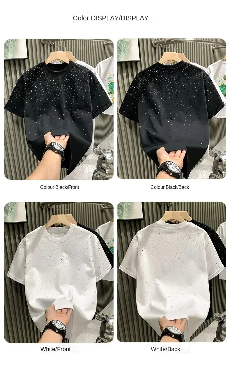 Été strass Rivet T-shirt pour hommes vêtements col rond T-shirt style décontracté mode haute rue 2025 hommes été manches courtes
