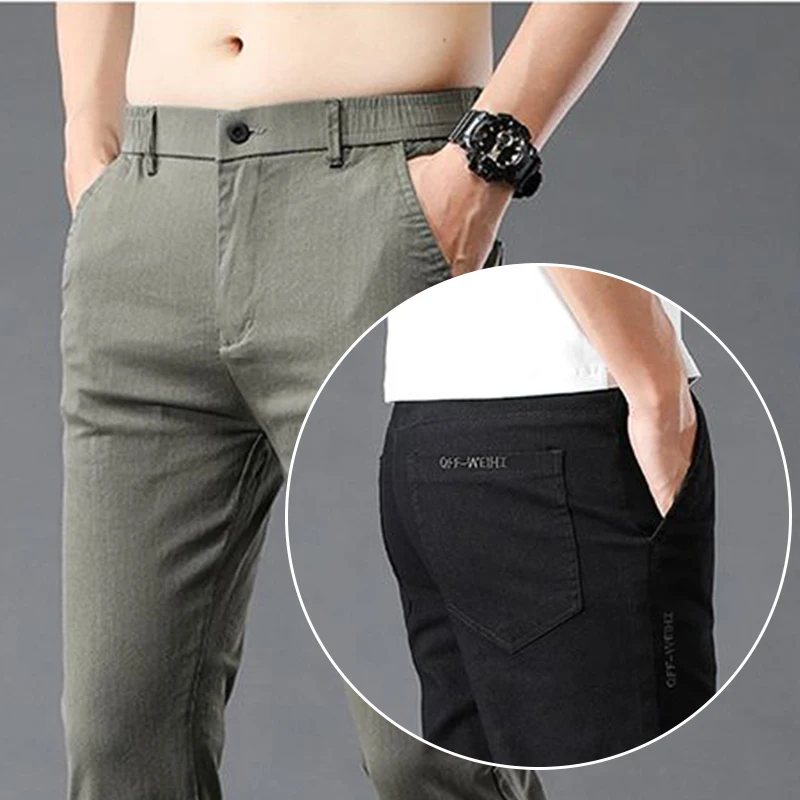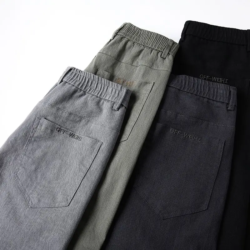 Fashion Men Casual Straight Tailored Trousers Male Jean Like Pants Comfortable Light Gray Dark Grey Trousers