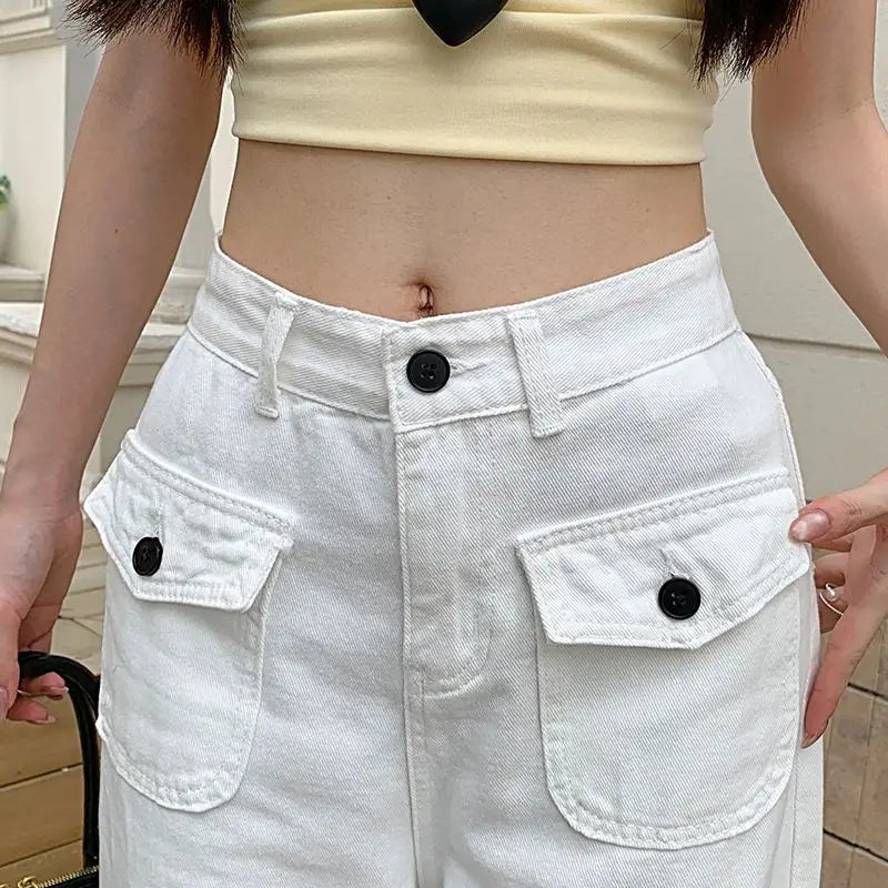 Jean Baggy blanc pour femmes, Streetwear, décontracté, poches amples, jambes larges, pantalon de sol en Denim, taille haute, droit, Y2K, 2025