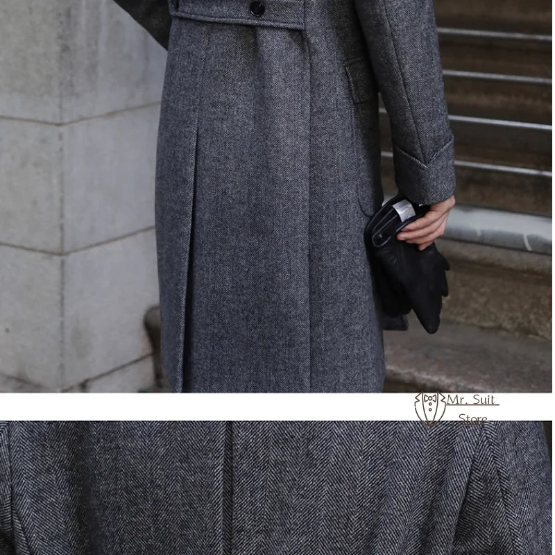 Veste de costume longue rétro britannique pour hommes