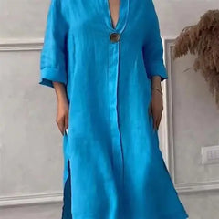 Women's Casual Button-Up Linen irt Long Ne round Color Blo Pet Clothing Accories