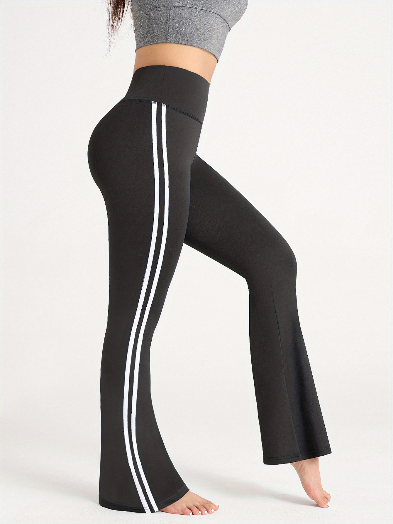 Women'S High-Waisted Flared Yoga Pants - Fitness & Exercise Tummy Control Leggings with Pockets, Geometric Pattern, Elastic Waistband, Quick-Dry & Tummy-Lifting Design for Yoga, Running, Gym, Casual Wear, Yoga Pants, Gym Appa