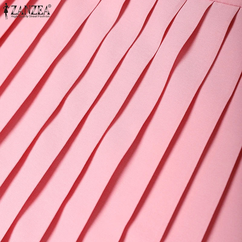 ZANZEA élégant a-ligne Jupes plissées femmes mode taille haute Patchwork Midi Faldas Mujer bureau déplacements solide Jupes Femme